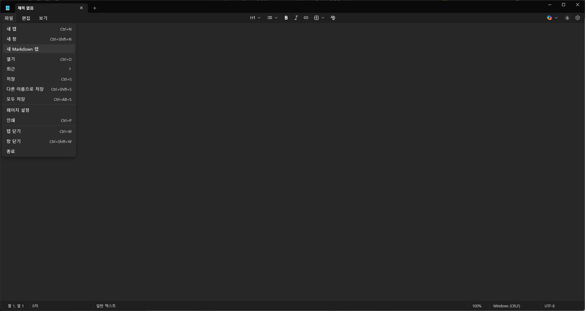 새문서로 Markdown탭을 만들고