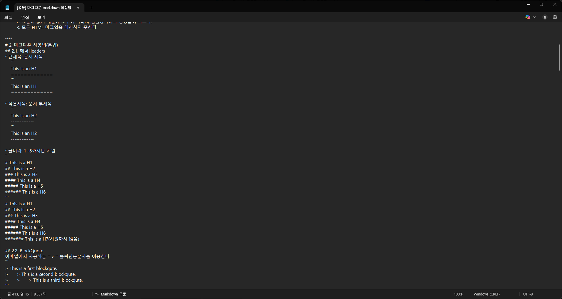윈도 기본 메모장에서 드디어 Markdown 문서가 지원된다